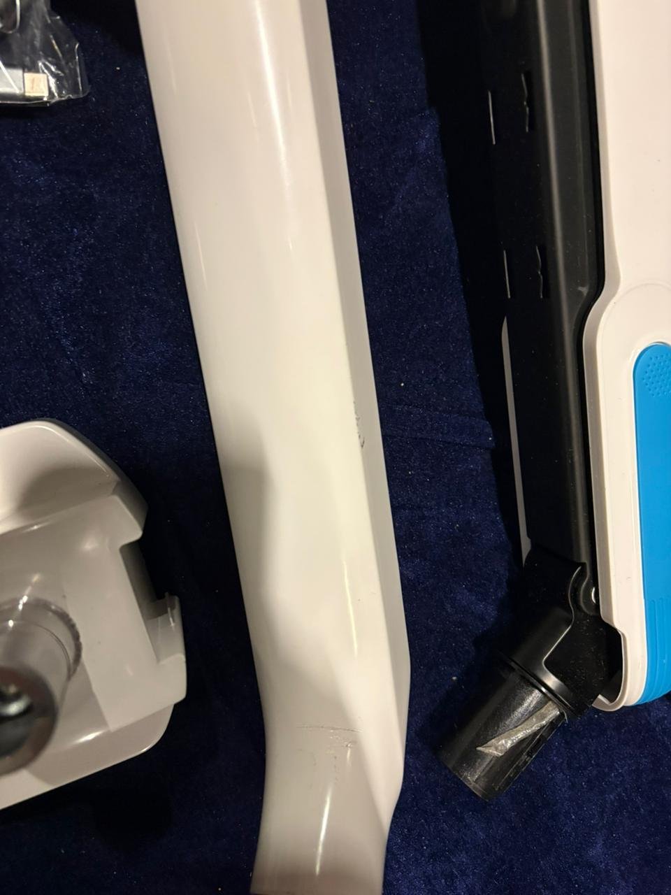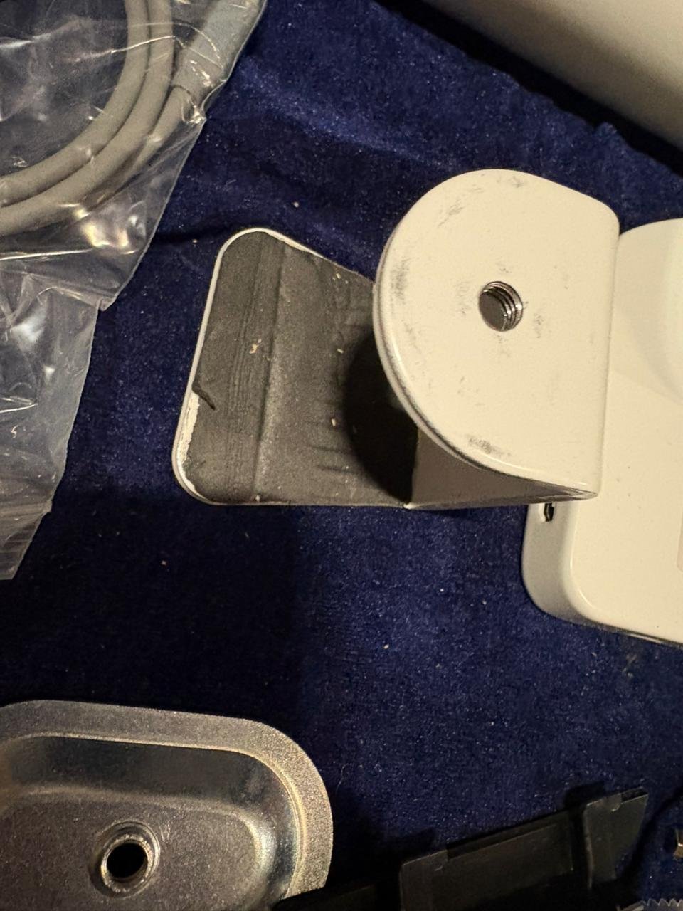 Упаковка  вскрывалась, мятая , вся в скотче. Оборудование  использовалось. На лаковой поверхности есть потертости, царапины.