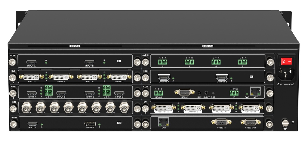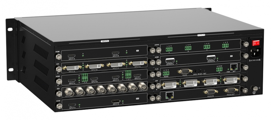 20x16 (3U шасси), до 4K, до 8 слоев, HDMI / DVI / DP / SDI / Аудио, бесподрывный, Предпросмотр, OSD, RS232, GUI