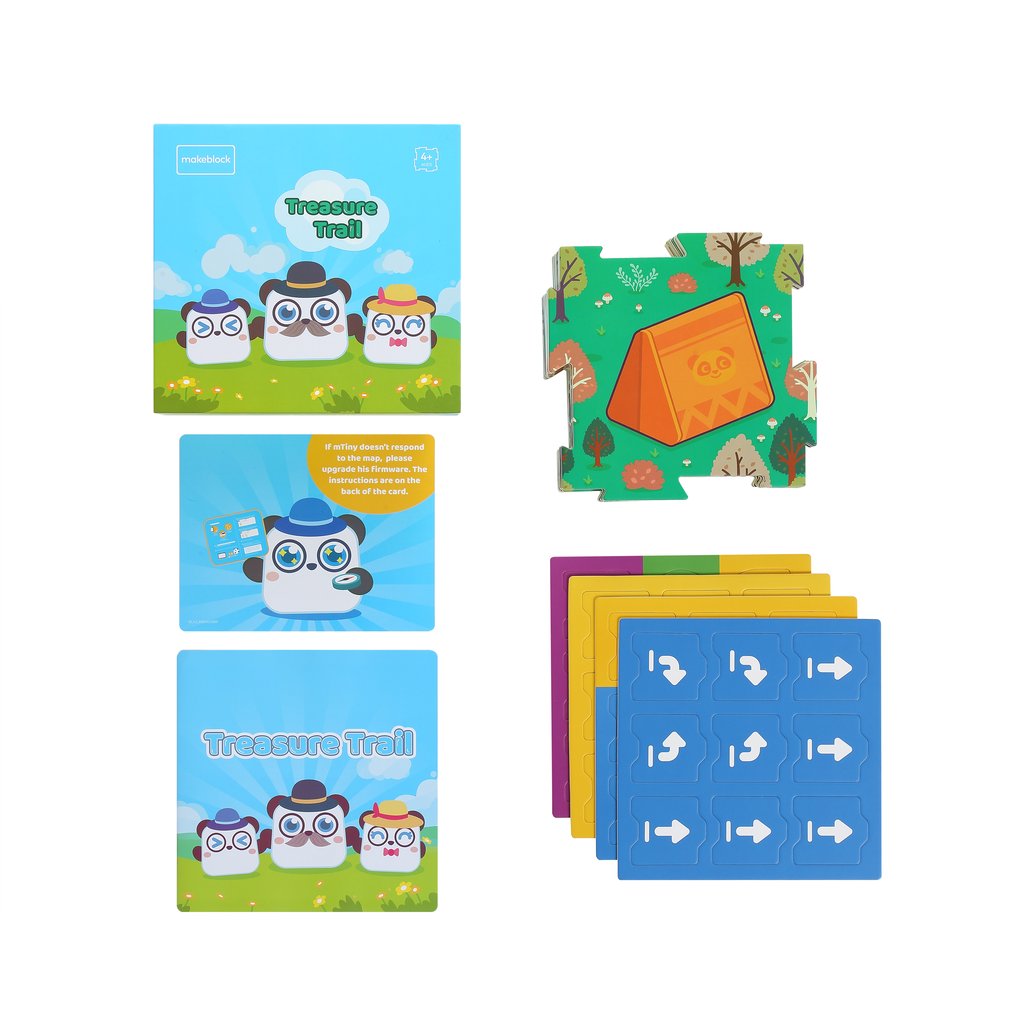 Состоит из робота, управляющей ручки, карты с кодами управления, игровой карты-поля, фломастеров, игровых элементов (флажков, карточек, масок и т/п). Управляющая ручка и робот оснащены аккумуляторами, которые заряжаются через интерфейс USB (5 Вольт). Кабель для зарядки входит в комплект поставки.