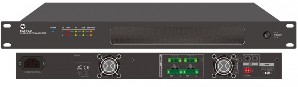 Номинальная выходная мощность Exell EAT2240 составляет 2×240 Вт, поэтому его можно использовать в качестве двухзонной системы фонового озвучивания с несколькими источниками при минимальных затратах. Универсальные выходы громкоговорителя с высоким сопротивлением 100 В и низким сопротивлением от 4 Ом позволяют использовать его как в трансляционных инсталляциях, так и при установке стереозвука.